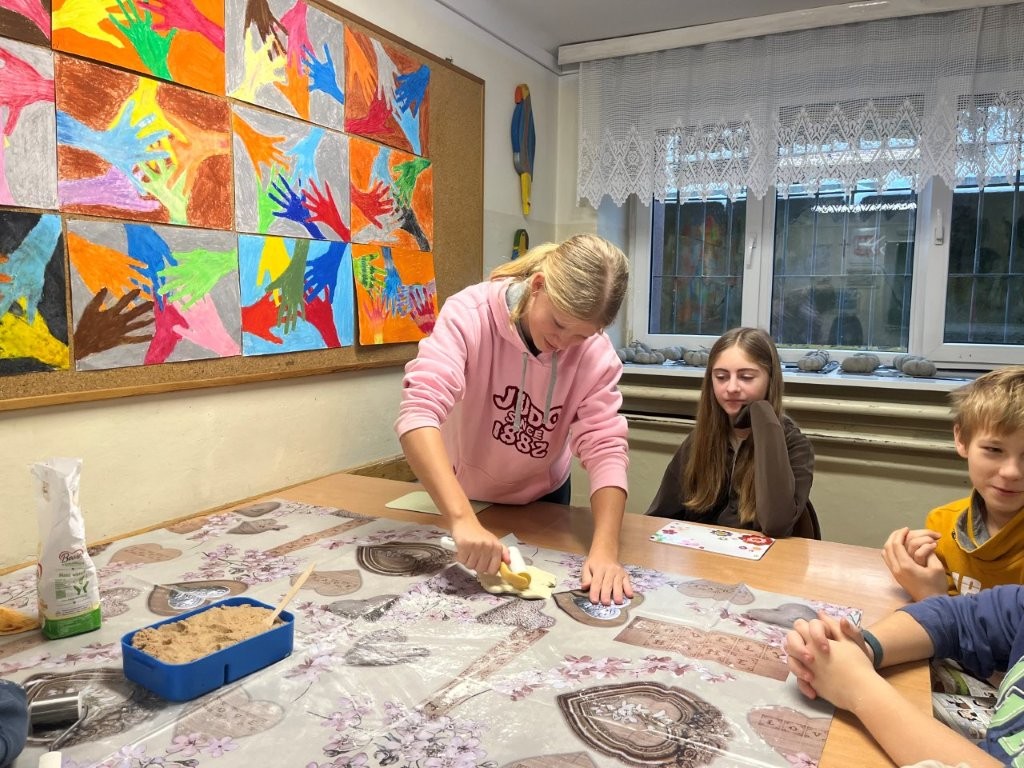 Jutro czeka nas kolejny dzień kulinarnych wyzwań! Uczniowie będą przygotowywać racuchy z jabłkami – pełne naturalnej słodyczy i witaminy C – oraz kanapki z serem białym i miodem, które łączą w sobie dawkę wapnia, białka i cennych składników odżywczych zawartych w miodzie.