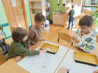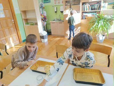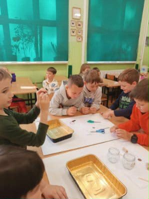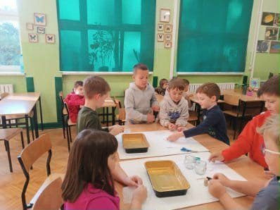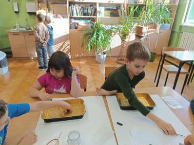 Uczniowie badali właściwości magnesu, wybierali i badali, które materiały przyciąga magnes, a które nie .