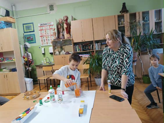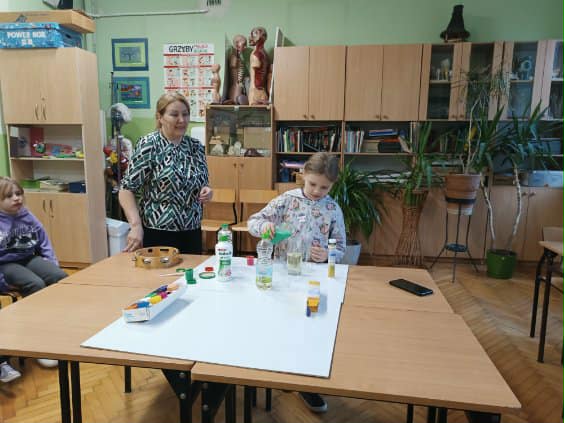 Dla dzieci były to bardzo ciekawe zajęcia. Mogły w swoich doświadczeniach zaobserwować wir powietrza tworzący lejkowaty kształt charakterystyczny dla tornada. W tym celu wykonały eksperyment z użyciem wody, oleju, barwnika, preparatu musującego.