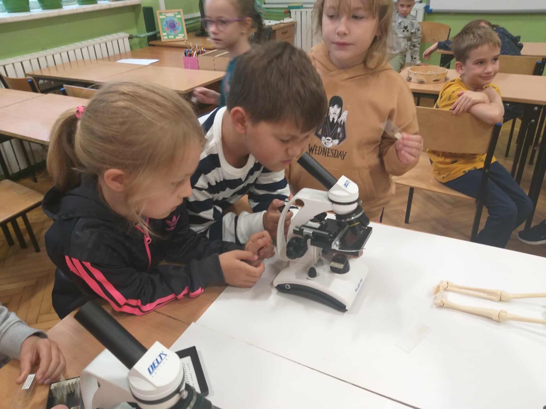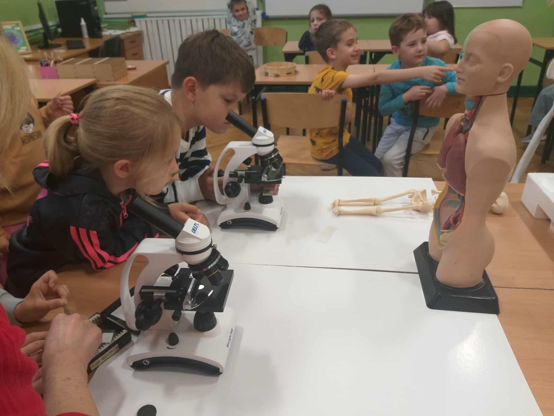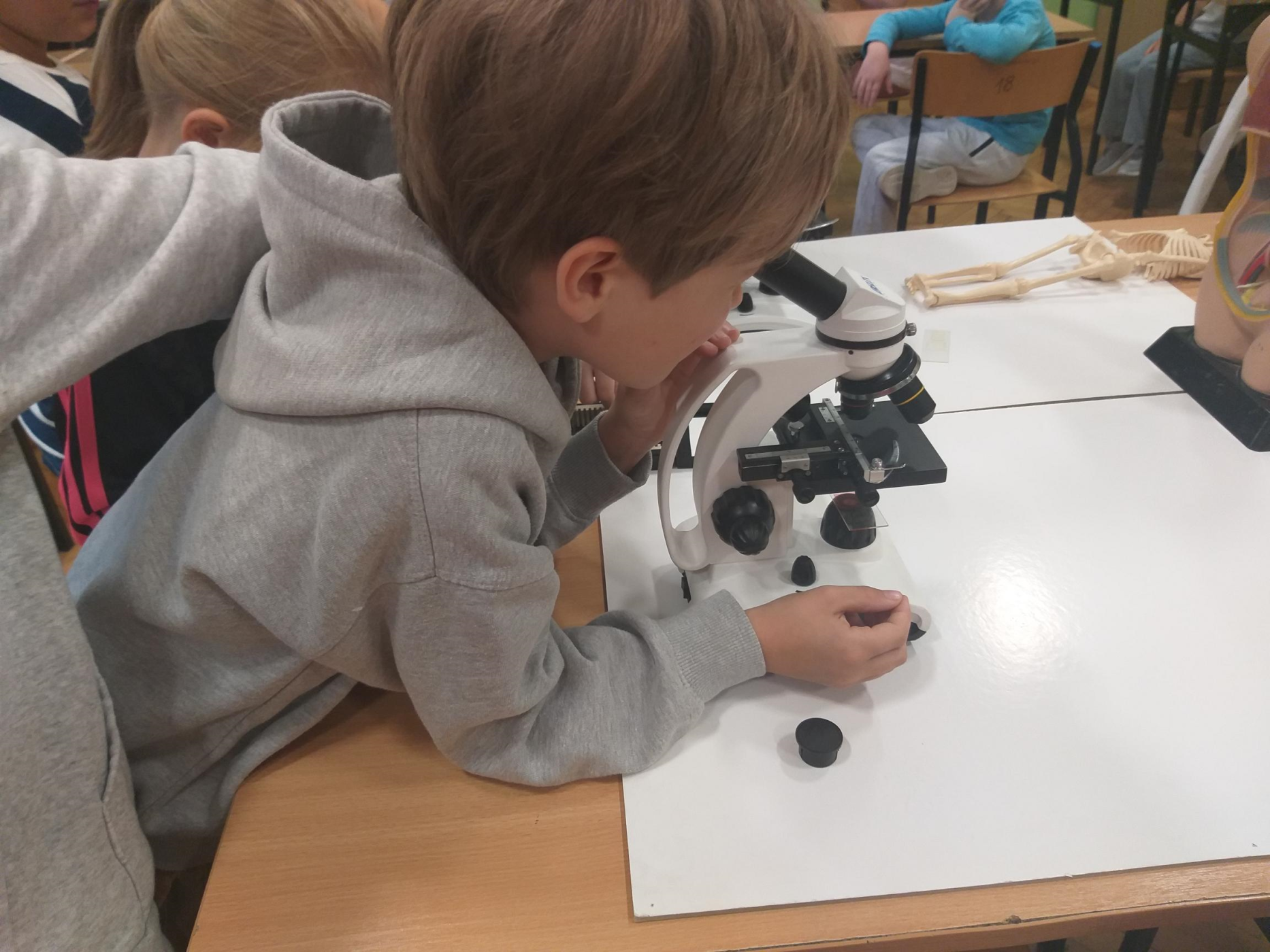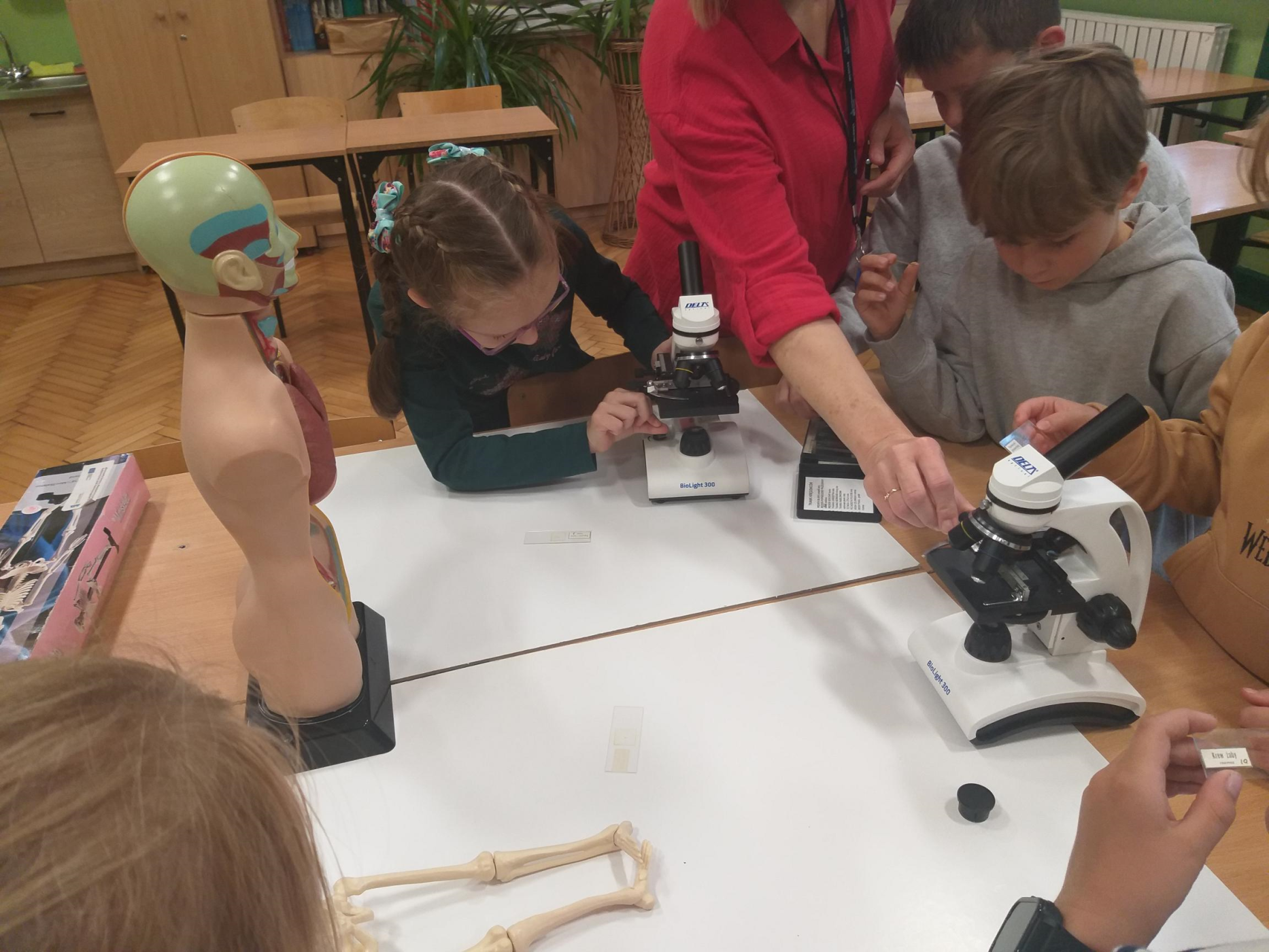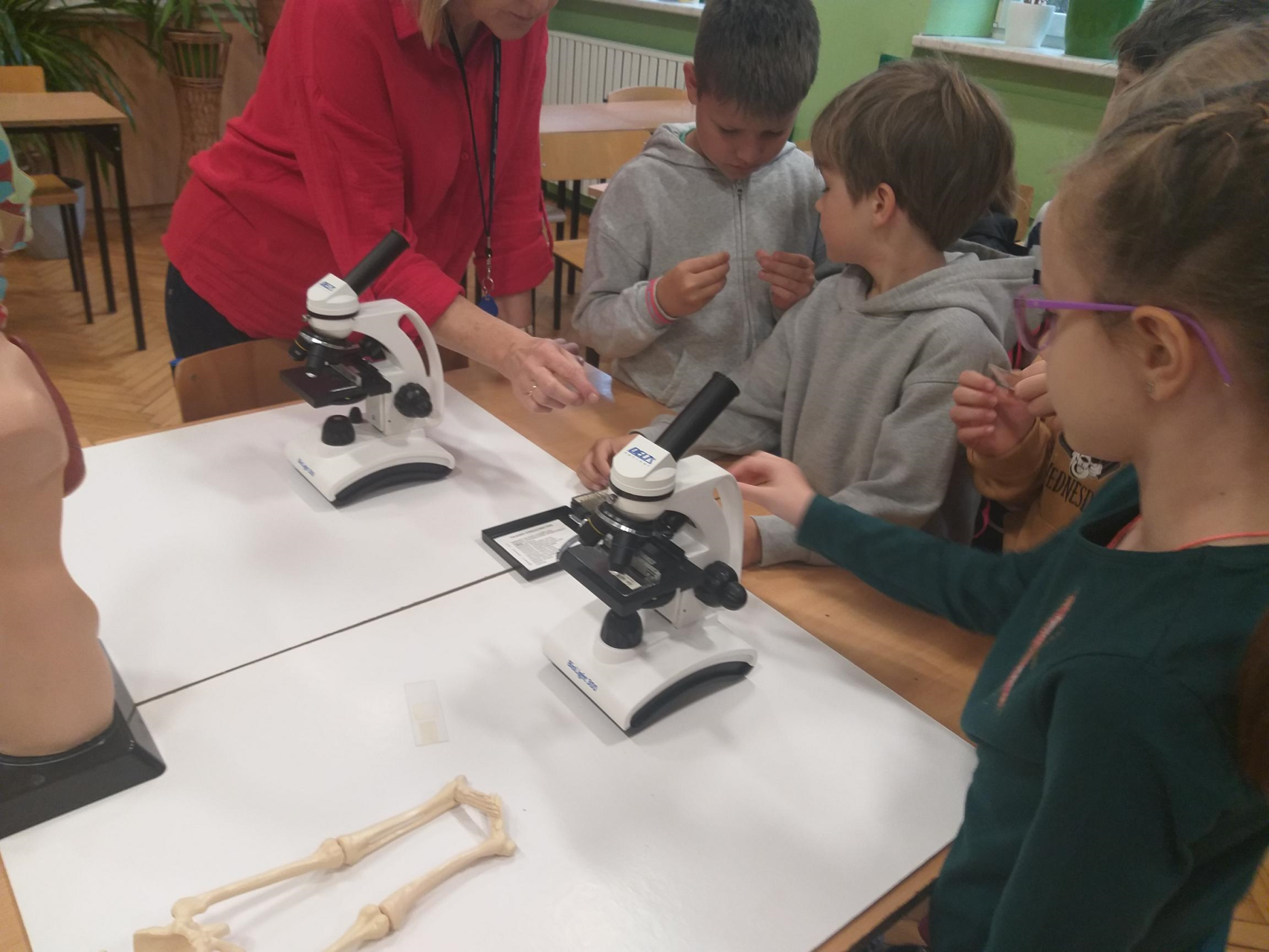Dziś dzieci poznały budowę mikroskopu i mogły oglądać przygotowane preparaty.