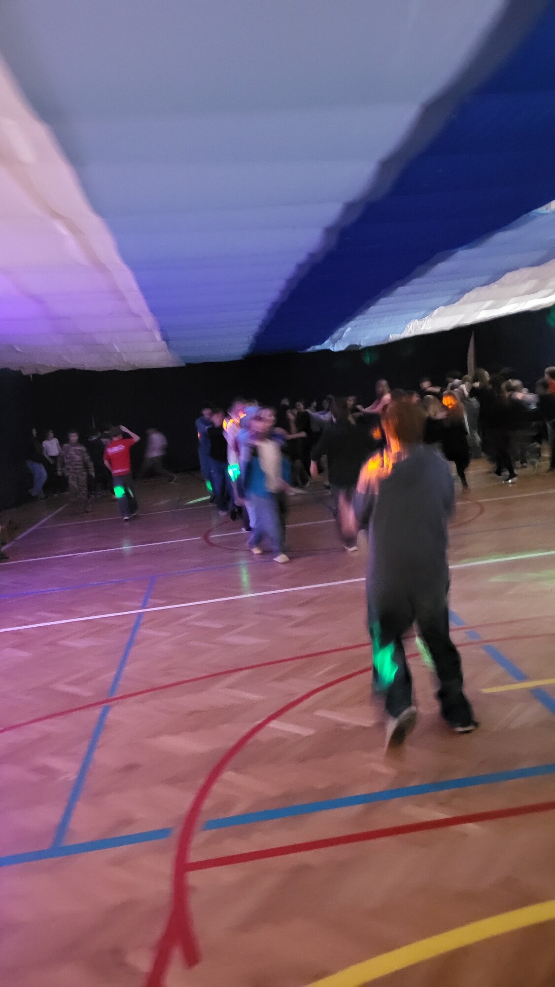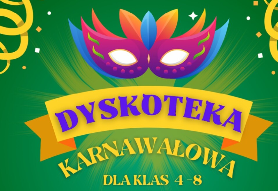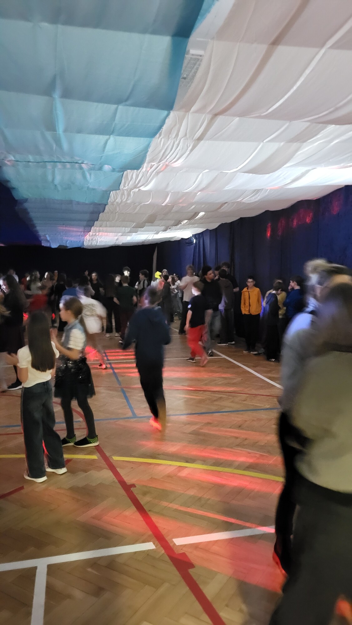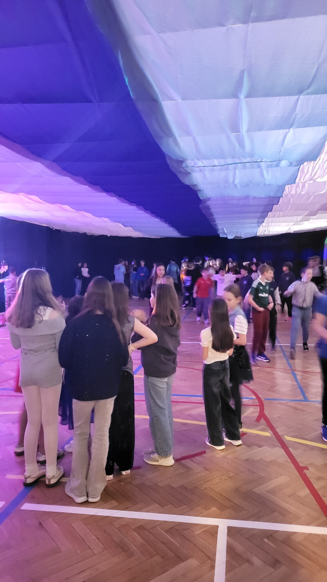 W dniu 13 lutego 2026 roku w naszej szkole odbyła się dyskoteka karnawałowa dla uczniów klas 4–8. Tego wieczoru sala gimnastyczna zamieniła się w kolorową, pełną świateł i muzyki przestrzeń do wspólnej zabawy. Nie zabrakło tanecznych hitów oraz świetnej atmosfery.