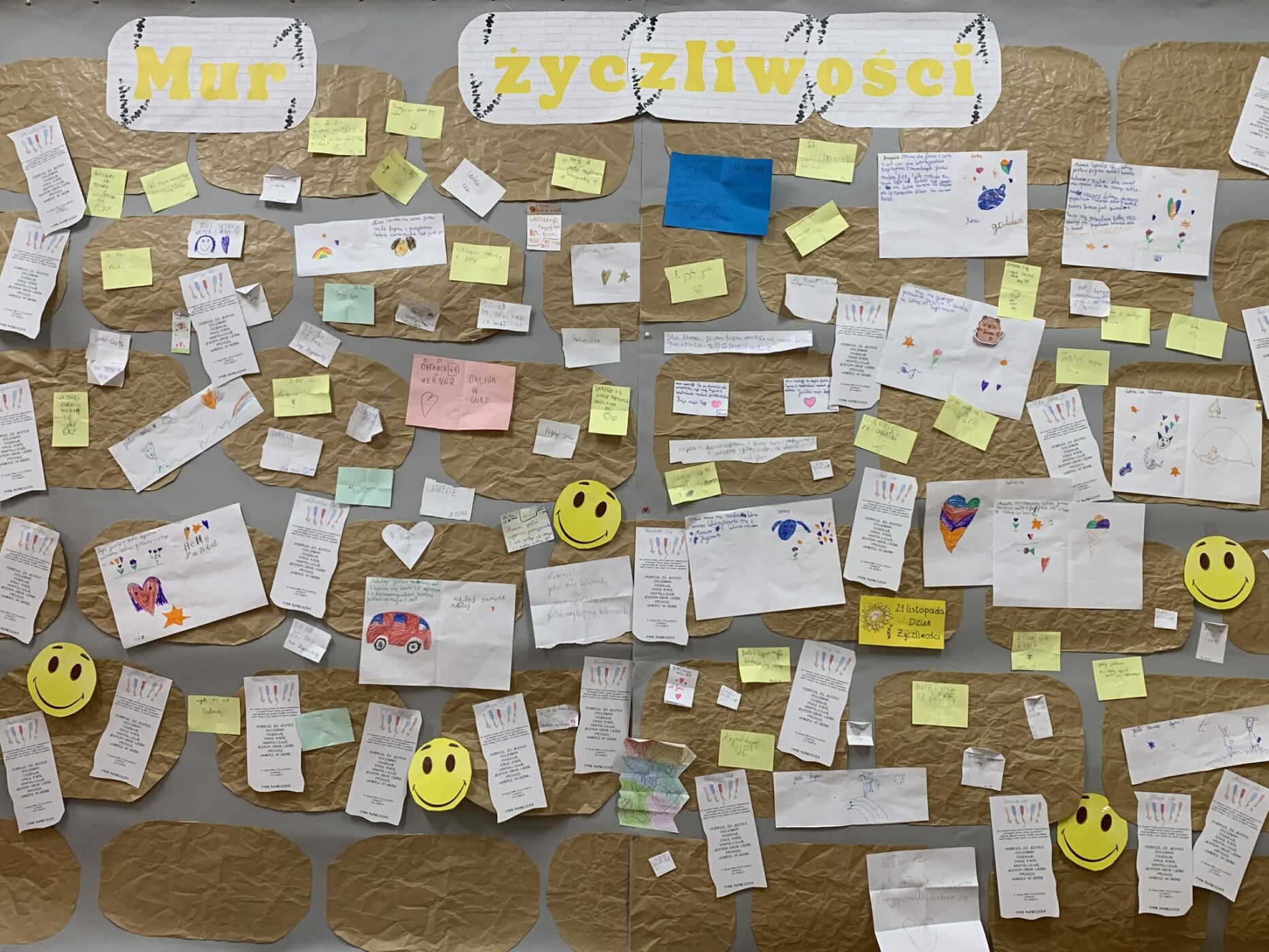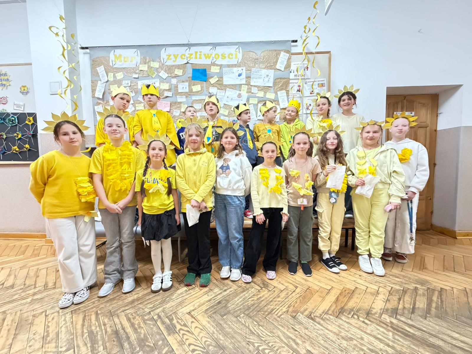 W dniu 21 listopada w naszej szkole świętowaliśmy Dzień Życzliwości - pełen uśmiechów, ciepłych gestów i pozytywnej energii. Uczniowie przyszli ubrani na żółto, rozświetlając szkolne korytarze niczym promienie słońca. Rodzice wraz z uczniami przygotowali przepyszne, domowe wypieki, które trafiły do naszej Kawiarenki Życzliwości, tworząc wyjątkowo słodką i serdeczną atmosferę. Wspólnie zbudowaliśmy kolorowy Mur Życzliwości, wypełniony dobrymi słowami i miłymi myślami, a szkolna Poczta Życzliwości pozwoliła nam przekazać sobie nawzajem ciepłe wiadomości.