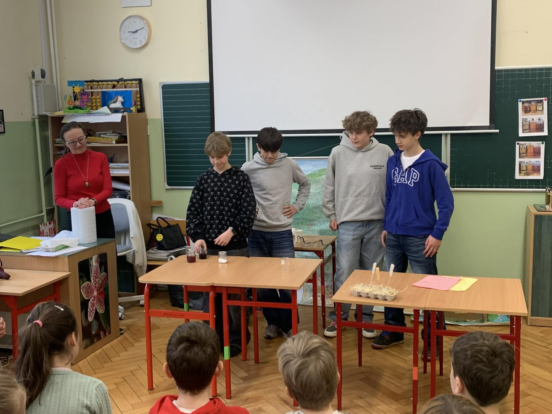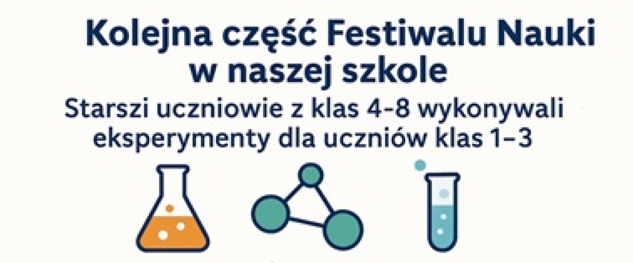 z radością informujemy, że kolejna część Festiwalu Nauki w naszej szkole już za nami! Tym razem to starsi uczniowie z klas 4–8 wcielili się w rolę młodych naukowców i przygotowali wyjątkowe eksperymenty dla swoich młodszych kolegów i koleżanek z klas 1–3.