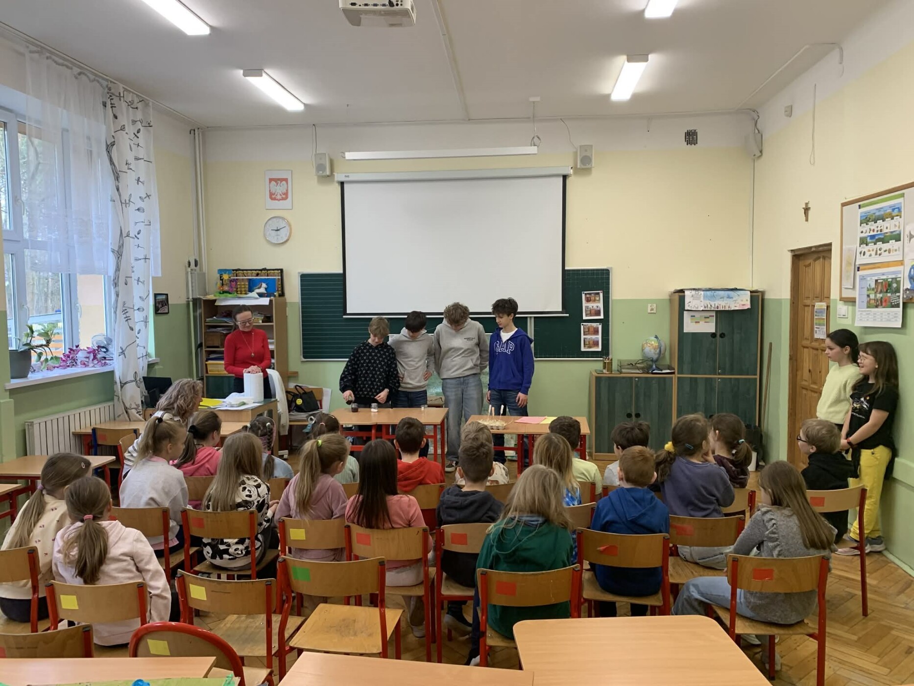 Dzięki ich zaangażowaniu młodsi uczniowie mogli uczestniczyć w ciekawych doświadczeniach, poznawać zjawiska przyrodnicze oraz odkrywać, jak fascynująca może być nauka. To była doskonała okazja do integracji, współpracy i wspólnego odkrywania świata!