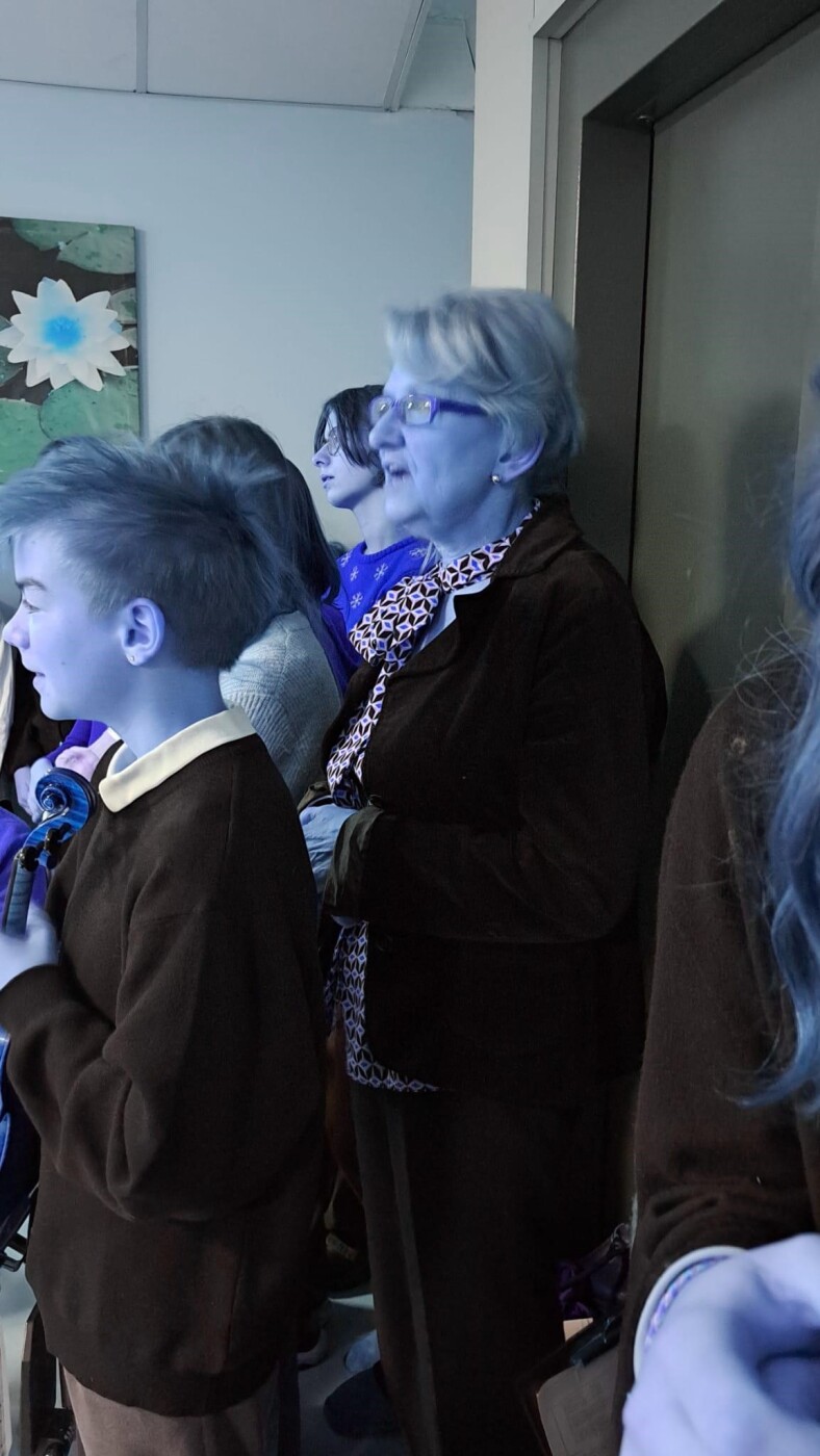 Po przekazaniu paczek zaprezentowaliśmy scenariusz wieczoru wigilijnego pt. „Jest taki dzień…”. Następnie wspólnie śpiewaliśmy kolędy, w tym również w różnych językach, w wykonaniu grupy dziewcząt. Na zakończenie utalentowani uczniowie naszej szkoły zaprezentowali swoje umiejętności muzyczne.