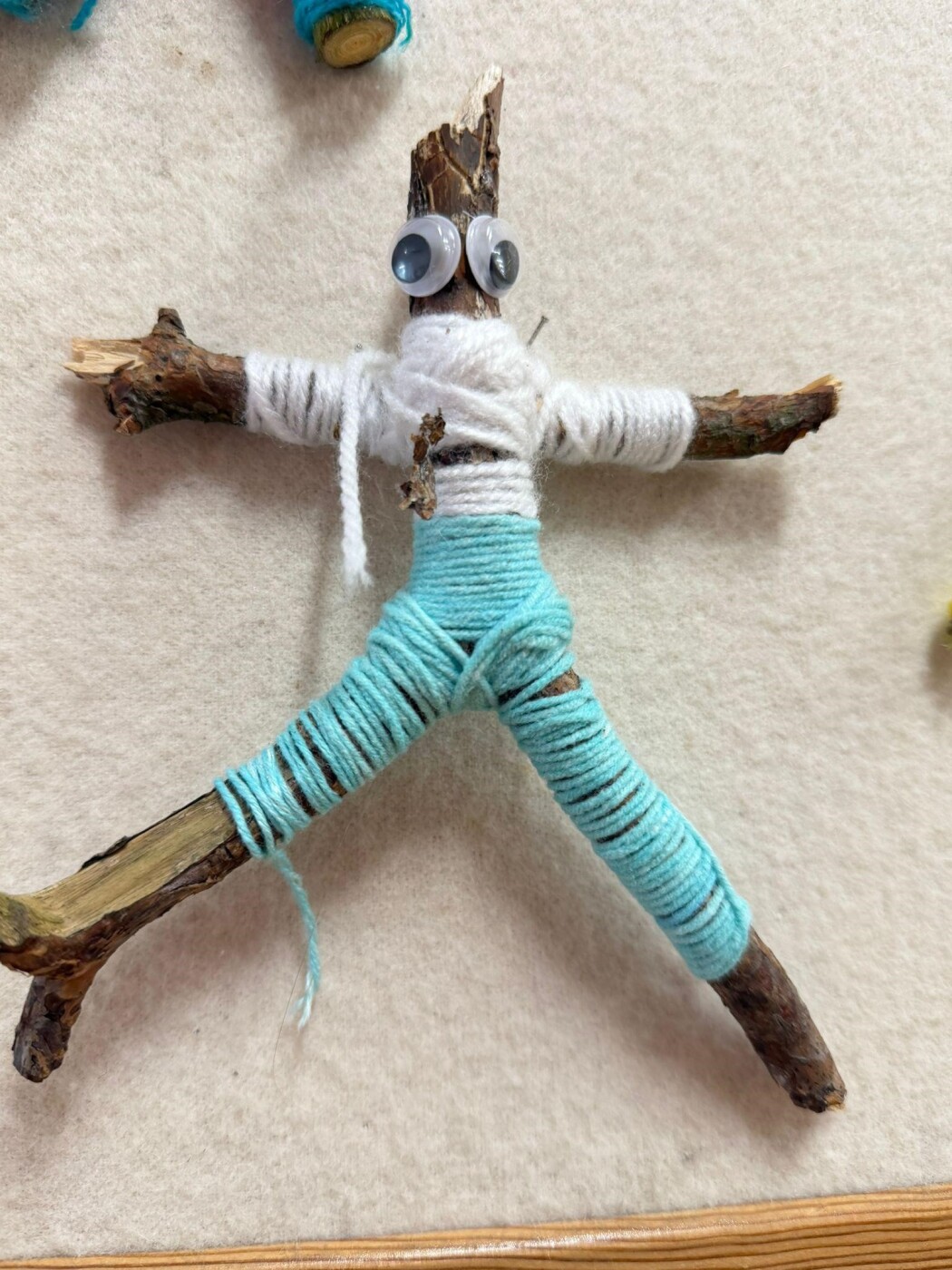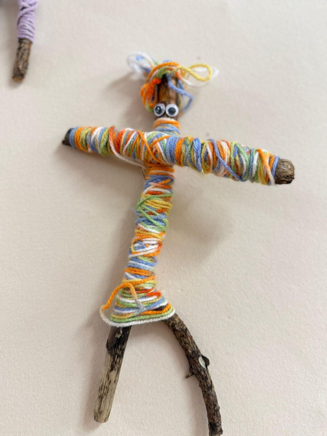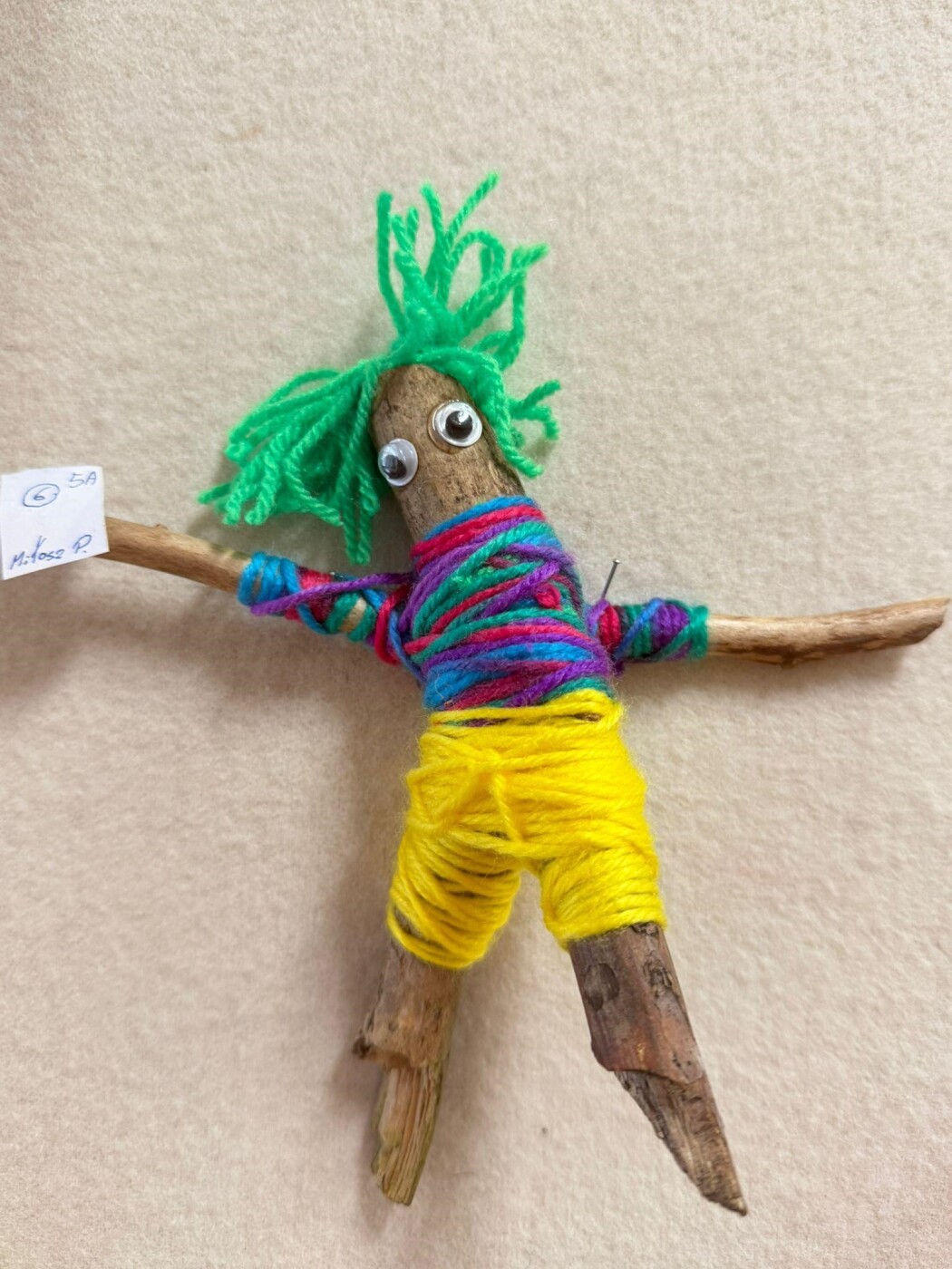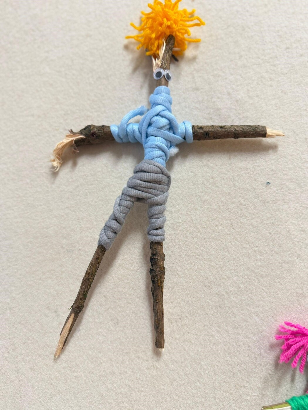 Uczniowie klasy 5a wykonali kreatywne „patyczaki” – postacie z naturalnych materiałów. Do pracy wykorzystali znalezione patyki oraz kolorową włóczkę, rozwijając wyobraźnię i zdolności manualne.