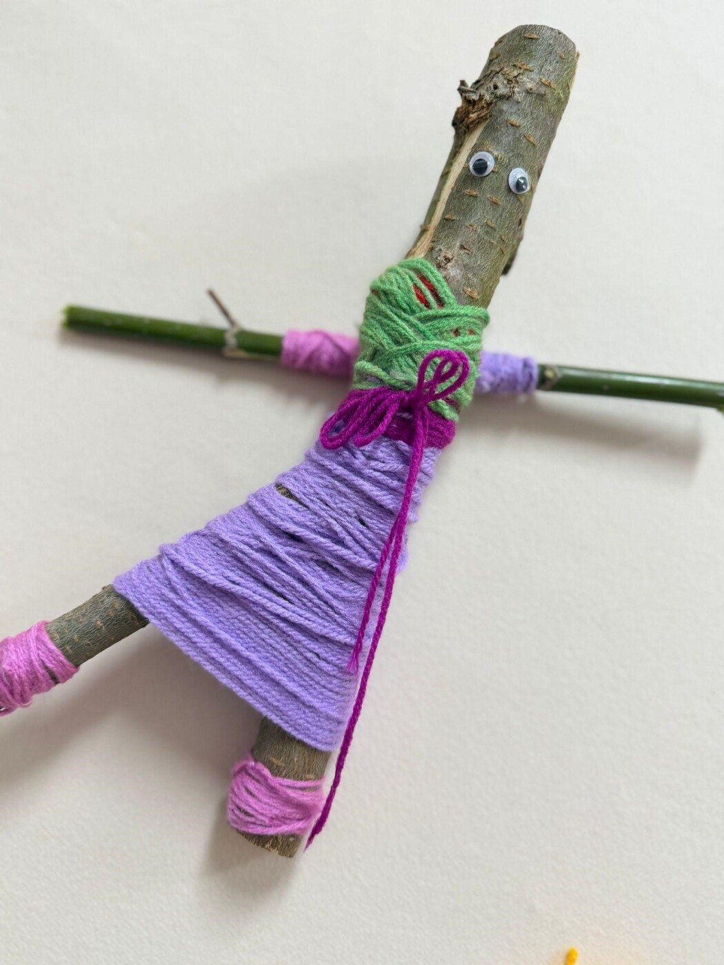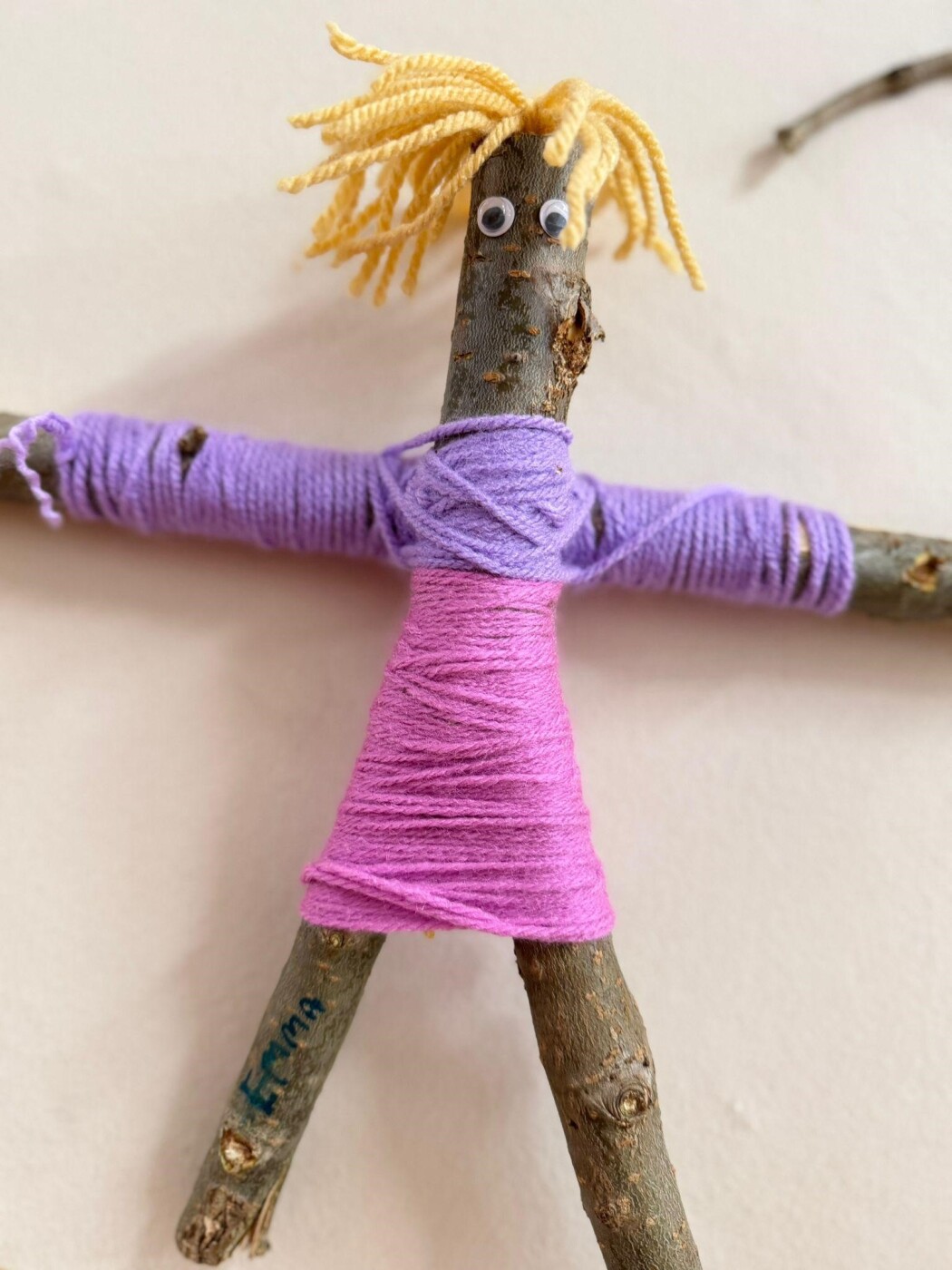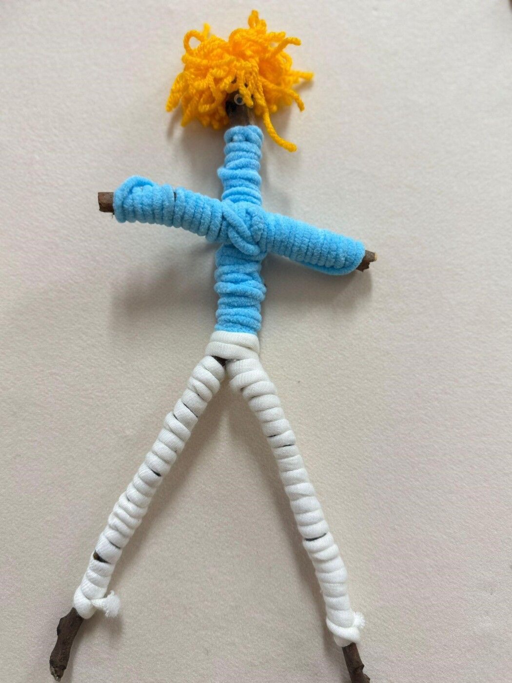 Najpierw uczniowie dobierali patyki, tworząc z nich sylwetkę postaci (tułów, ręce i nogi). Następnie łączyli elementy poprzez owijanie włóczką, która pełniła funkcję zarówno „ubrań”, jak i spoiwa konstrukcji. Na końcu dodawali detale – włosy z włóczki czy oczy z drobnych elementów.