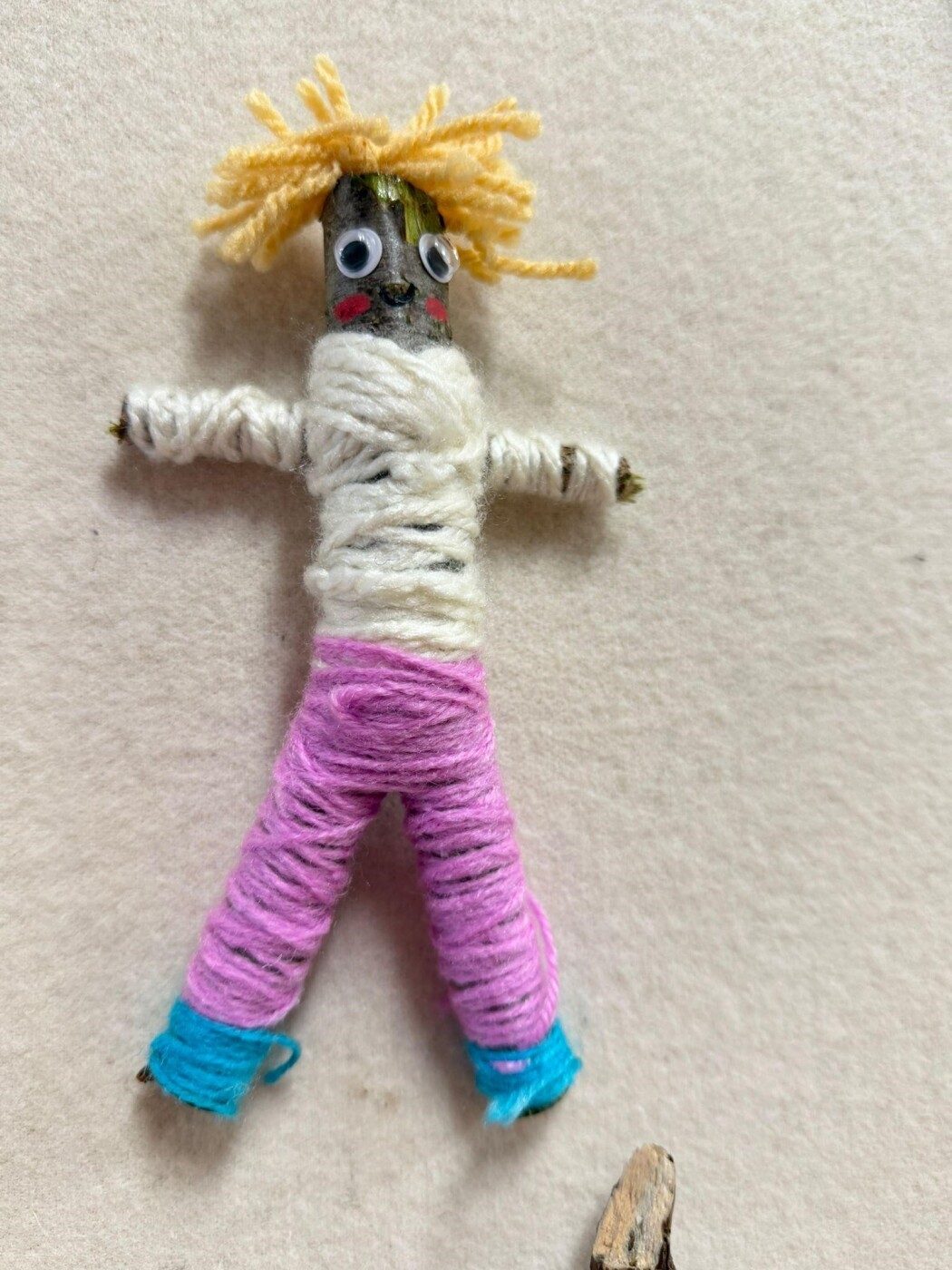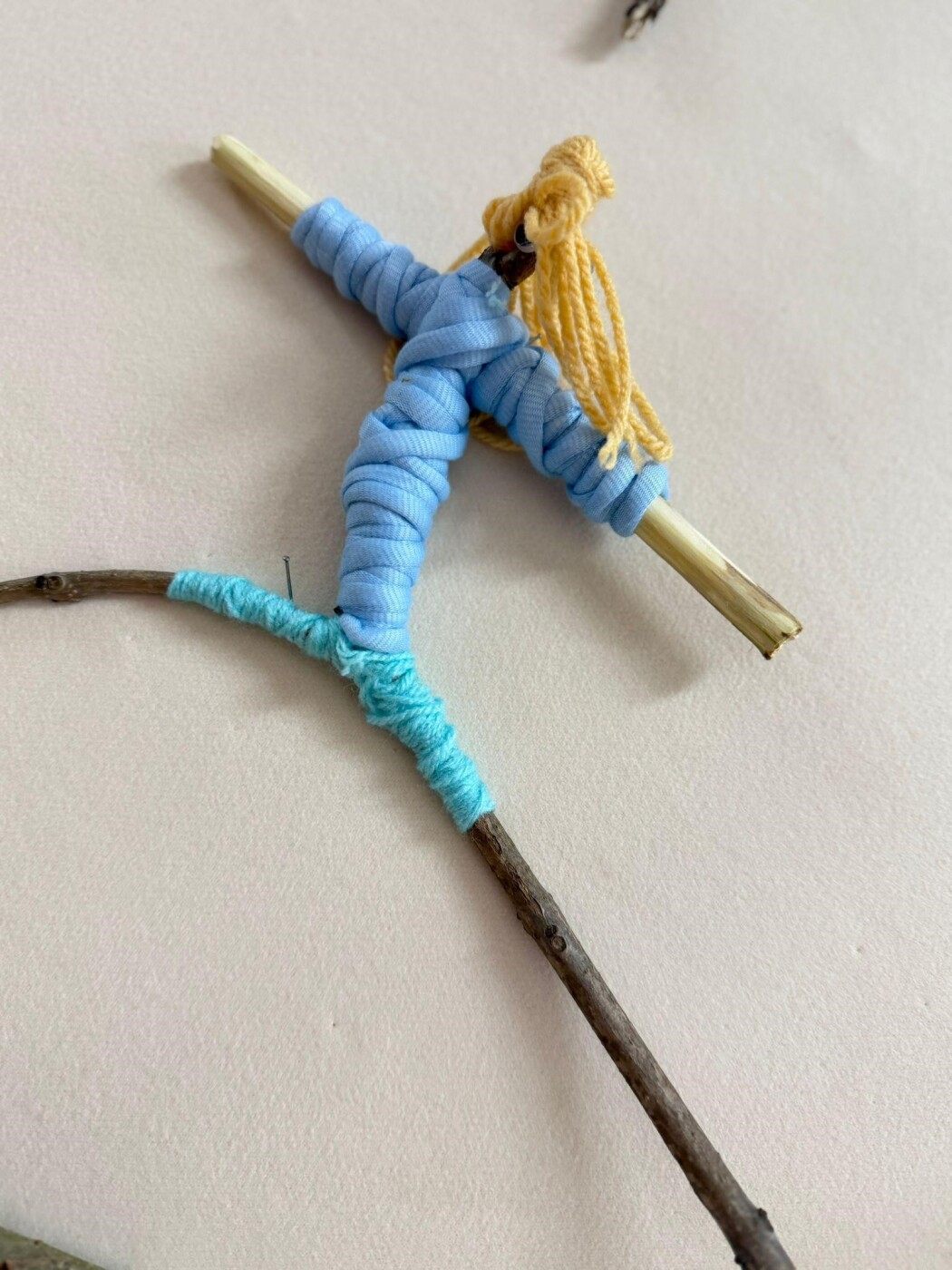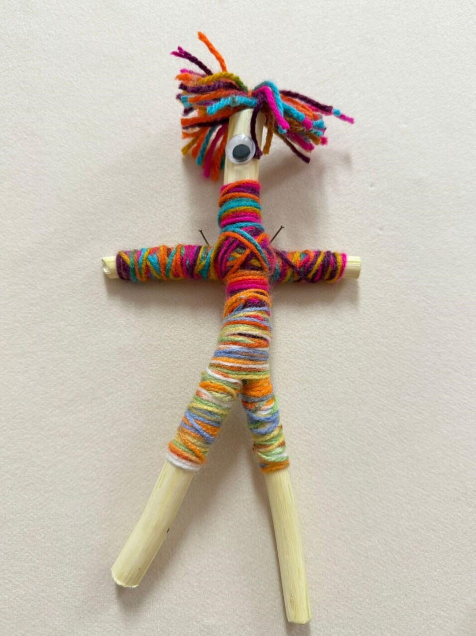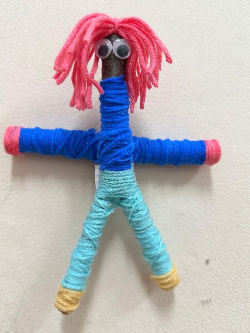 Najpierw uczniowie dobierali patyki, tworząc z nich sylwetkę postaci (tułów, ręce i nogi). Następnie łączyli elementy poprzez owijanie włóczką, która pełniła funkcję zarówno „ubrań”, jak i spoiwa konstrukcji. Na końcu dodawali detale – włosy z włóczki czy oczy z drobnych elementów.