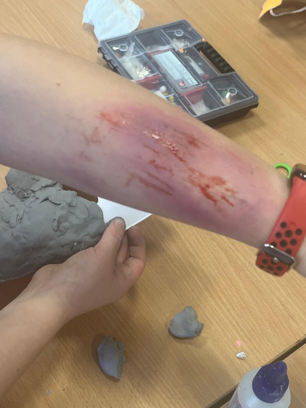 W klasie 4a odbyły się niezwykle ciekawe warsztaty z charakteryzacji filmowej. Uczniowie z dużym zaangażowaniem poznawali tajniki tworzenia efektów specjalnych, ucząc się m.in. wykonywania realistycznych ran oraz malowania masek różnymi technikami. Zajęcia dostarczyły dzieciom wiele radości i pozwoliły rozwinąć ich kreatywność oraz wyobraźnię.